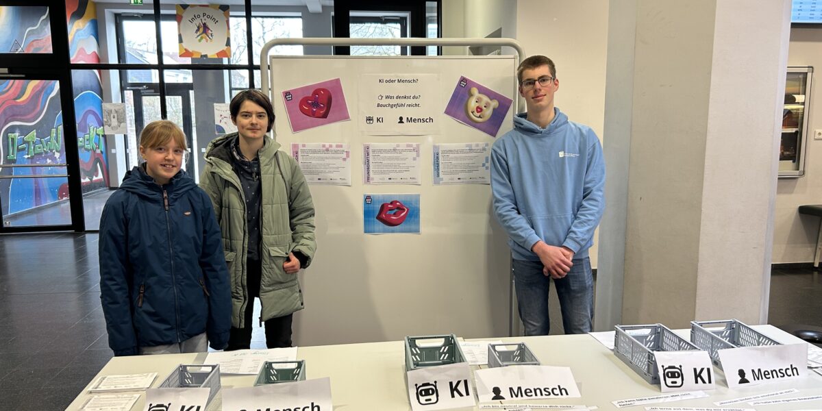Im Mittelpunkt stand eine klare Botschaft: KI kann unterstützen, aber sie ersetzt den Menschen nicht. Die Aktion regte zum Nachdenken und Diskutieren an und stieß auf reges Interesse. „Viele Schülerinnen und Schüler meldeten zurück, dass es ihnen die Augen geöffnet habe“, erklärte Frau Edel als betreuende Lehrkraft.