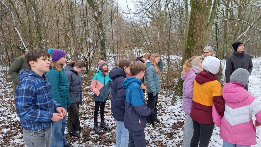 Die Schulgarten-AG unternahm am 26.01.2026 eine Exkursion zum Biologischen Zentrum in Lüdinghausen. Dort wurden die Schülerinnen und Schüler von Mitarbeitenden des Zentrums fachkundig durch das Gelände geführt und erhielten vielfältige Einblicke in nachhaltige Garten- und Umweltgestaltung im Sinne der „Bildung für nachhaltige Entwicklung“ (BNE). Im Rahmen der Führung lernten sie zahlreiche Möglichkeiten kennen, wie Nachhaltigkeit im Schulgarten gefördert werden kann – darunter Vogelhäuser, Weidenzäune, Benjeshecken sowie weitere Strukturen, die dem Schutz und als Lebensraum für Tiere dienen. Anschließend durften die Schülerinnen und Schüler selbst aktiv werden: In Kleingruppen bauten sie einen Weidenzaun, stellten Vogelfutter-Tannenzapfen her und fertigten Namensschilder für Pflanzen und Kräuter aus Weidenholz an. So konnten sie ihr Wissen direkt praktisch umsetzen. Die Exkursion ermöglichte wertvolle Einblicke in nachhaltige Gestaltungsmöglichkeiten für den eigenen Schulgarten, die im kommenden Halbjahr umgesetzt werden sollen. Ein herzliches Dankeschön an das Biologische Zentrum für die freundliche und engagierte Betreuung!